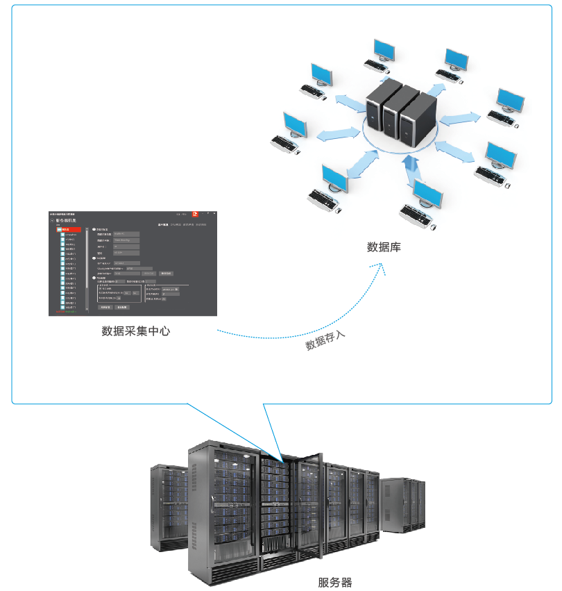 服務器體系是智慧水務管理系統的運行中心和數據中心,體系由服務器、數據庫、數據采集中心組成。